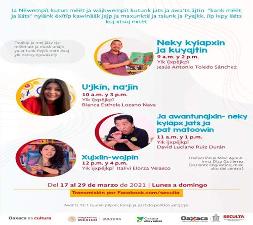 Como parte del Programa de Desarrollo Cultural Infantil “Alas y Raíces”, que tiene como objetivo acciones destinadas al cumplimiento de los derechos culturales de las infancias -de 0 a 17 años de edad-; la Secretaría de las Culturas y Artes de Oaxaca (Seculta) cumple con el compromiso de impulsar actividades para la Primera Infancia en Oaxaca a través de diversas actividades que se realizan en lengua Mixe.