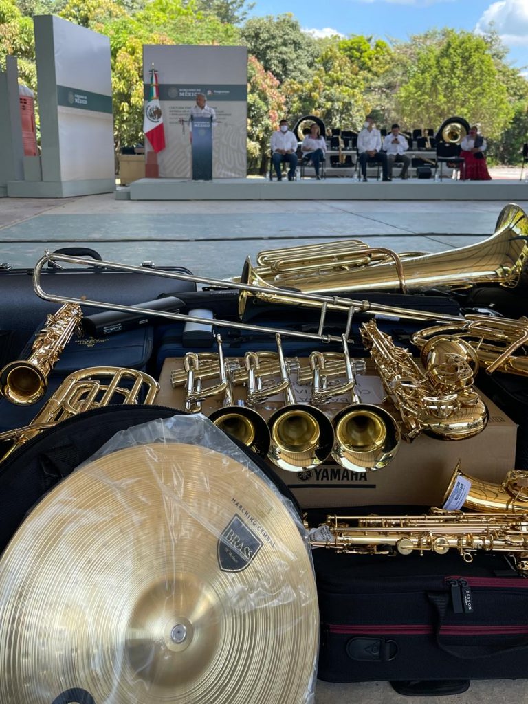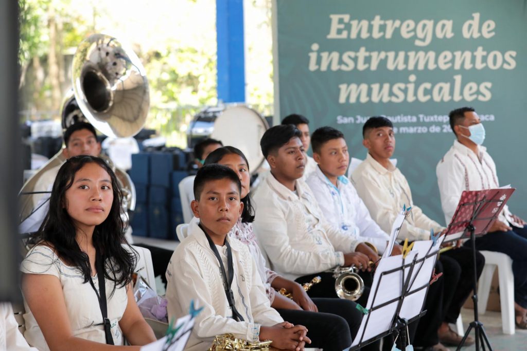 En su gira número 22 por el estado de Oaxaca, el Jefe del Ejecutivo federal entregó 694 instrumentos a 31grupos de bandas de música de igual número municipios en beneficio de alrededor de mil niñas, niños y jóvenes de los pueblos Chinantecos, Mazatecos, Cuicatecos, Mixtecos, Mixes y Zapotecos de 31 municipios, además de anunciar que cada año, de aquí al 2024 entregará instrumentos Musicales a las bandas de música del Oaxaca para seguir fomentando la cultura que es un arte y una riqueza.