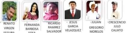 En tanto; por el Partido Verde Ecologista de México, PVEM, Crescencio Julio Calixto y por Partido Nueva Alianza, PANAL, Renato Virgen Segura, ambos fueron excluidos el por PRI .