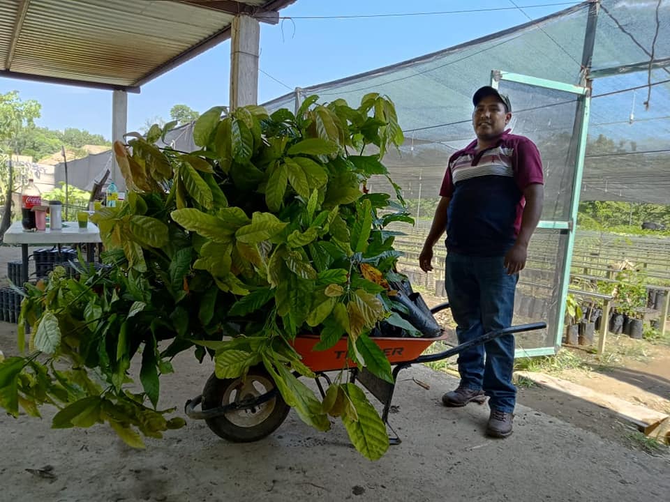 Trinidad Bartolo explicó que después de la germinación de las semillas y el crecimiento de las plantaciones en el vivero se hizo un monitoreo de necesidades y con base a ello; se distribuyeron las plantas de Caoba, Cedro, Melina y Cacao, este último se ha destinado más de las 10 mil plantas.