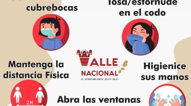 Rey Magaña García, Presidente Municipal de Valle Nacional, abundó que es necesario mantener las medidas preventivas en todos los espacios públicos, el uso correcto de cubrebocas, guardar la sana distancia y lavarse constantemente las manos con agua y jabón, así como el uso del gel antibacterial para evitar el incremento de contagios por COVID-19, finalizó.