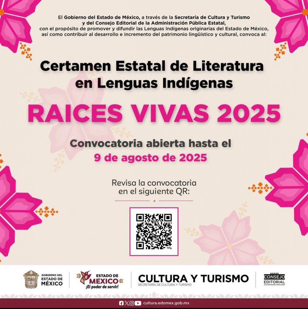 Con el objetivo de reconocer la creación literaria en lenguas maternas y preservar el patrimonio lingüístico y cultural de la entidad, el gobierno del Estado de México convoca a escritoras y escritores mexiquenses a participar en el Certamen Estatal de Literatura en Lenguas Indígenas ‘Raíces Vivas 2025’.